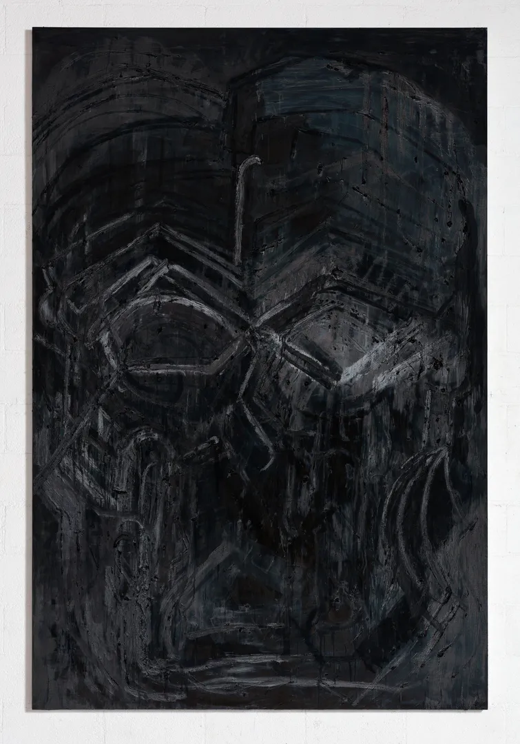 © Thomas Houseago Untitled (Black Painting 12) Thomas Houseago Accession Date: 02/13/17 Accession Number: F-HOUS-2017.006 2015-2016 charcoal, chalk and oil paint on canvas mounted on board 108 x 72 x 2 in. (274.32 x 182.88 x 5.08 cm)