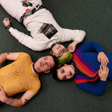 Don’t let the glitter in their faces distract you from the fires in their eyes! The Groans formed in 2015 when they noticed a lack of representation in their local scene. They write songs about police brutality, self-love, and why dogs don’t deserve to have nightmares. “How can I even afford to be alive? How can I even afford to die?” bassist Annie (she/they) wonders on “Earth Dweller,” the title track of their 2019 album out on Get Better Records. “A paycheck should not determine my worth/In the end, we’re all pathetic humans destroying ourselves and the Earth.” The Los Angeles queer-punk trio have a lot to be mad about, making their raw, feral style of punk feel relevant and timely. Annie rails about white supremacy and class struggles as guitarist Dewie (they/them) and drummer Nadine (she/her) hammer out a passionately aggressive punk attack. Even amid all their fury, The Groans show an endearing and yearning pop side on such reflective tunes as “Missing the Trees, Friends & Everything in Between.”